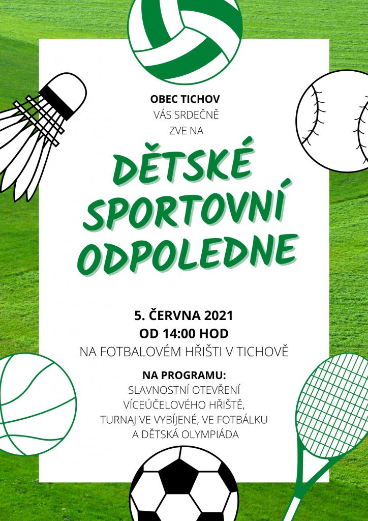 Obec Tichov vás všechny srdečně zve na DĚTSKÉ SPORTOVNÍ ODPOLEDNE