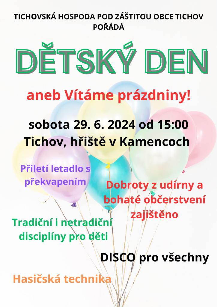 Děti se mohou zúčastnit různých disciplín a her, za splnění vždy dostanou odměnu. Pro všechny účastníky akce je zajištěno bohaté občerstvení, dobroty z udírny a DISCO. Nebude chybět ani překvapení.